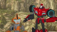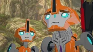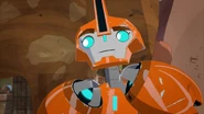 Thankfully, Toolbox and the others were able to get away thanks to Windblade's quick thinking. Deciding to split up, Toolbox led Bumblebee and Optimus Prime to the ventilation system. However, Steeljaw anticipated their plan, and, having acquired Bumblebee's Decepticon Hunter, used them to power himself up to fight the two Autobots, while Toolbox looked on.
